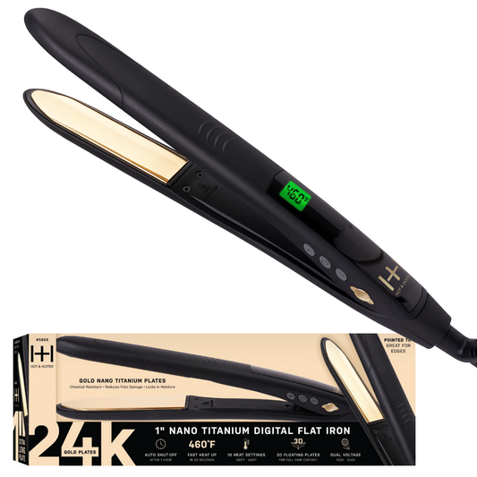 Hot & Hotter Digital Nano Titanium Flat Iron with Gold Plates 1in, 1 Count Hair Straightener, Black