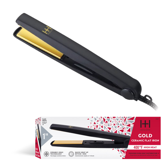 Hot & Hotter Gold Ceramic Electric Flat Iron 1in, 1 Count Hair Straightener, Black