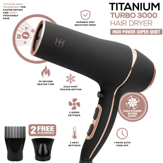 Hot & Hotter Titanium Turbo 3000 Hair Dryer, 1 Count, Black