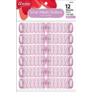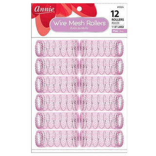 Annie Wire Mesh Rollers Large 1 1/8in, 12 Count Hair Curlers, Pink