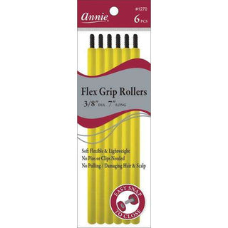 Annie Flex Grip Rollers 3/8in, 6 Count Extra Long Heatless Hair Curlers, Yellow