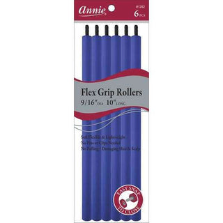 Annie Flex Grip Rollers 9/16in, 6 Count Extra Long Heatless Hair Curlers, Blue