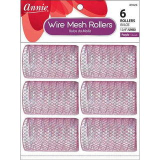 Annie Wire Mesh Rollers Jumbo 1 3/4in, 6 Count Hair Curlers, Purple
