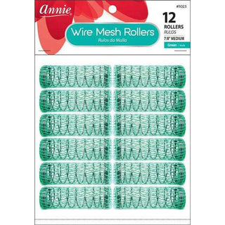 Annie Wire Mesh Rollers Medium 7/8in, 12 Count Hair Curlers, Green