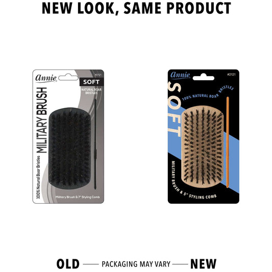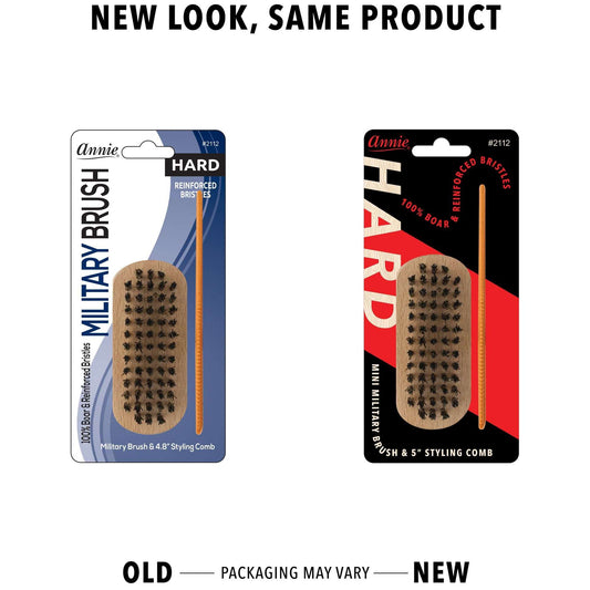 Annie Hard Mini Military Boar Bristle Brush With Comb 4.8In
