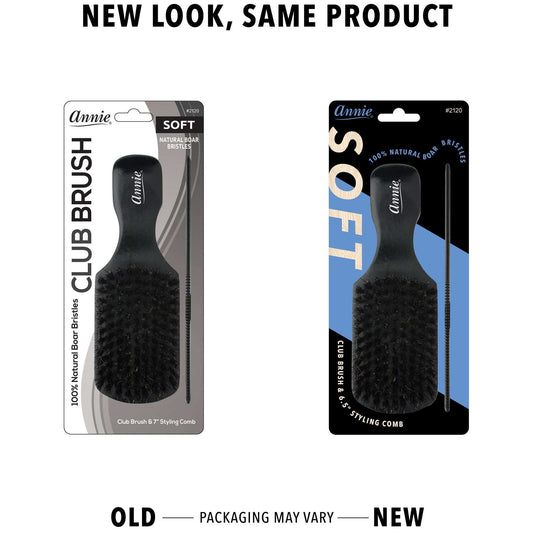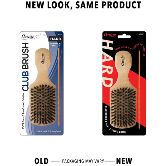 Annie Soft Wood Club Boar Bristle Brush With Comb 7 in