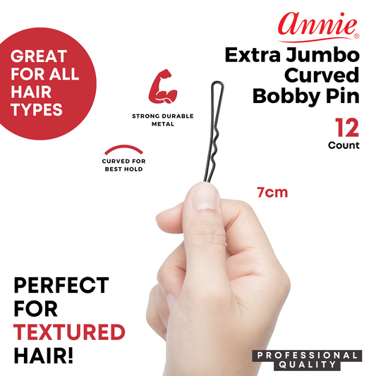 Annie Extra Jumbo Curved Bob Pin 7cm, 12 Count Hair Pins, Black