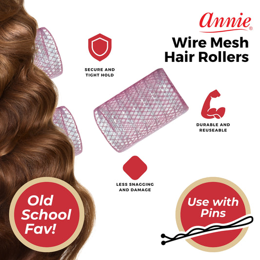 Annie Wire Mesh Rollers Large 1 1/8in, 12 Count Hair Curlers, Pink