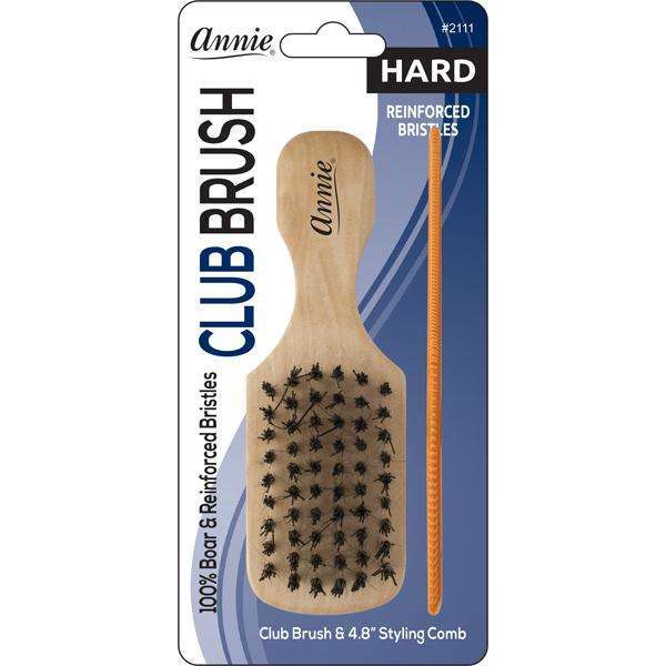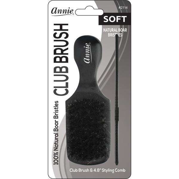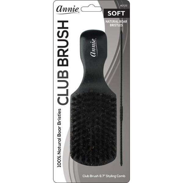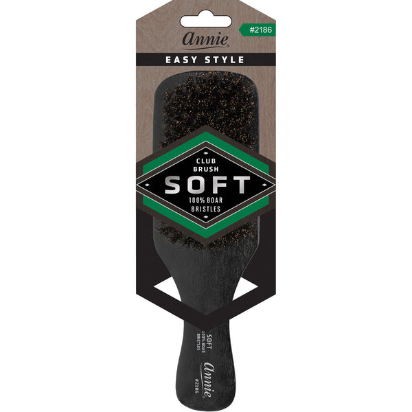 Annie Soft Club Brush 100% Pure Boar Bristles Dark Brown