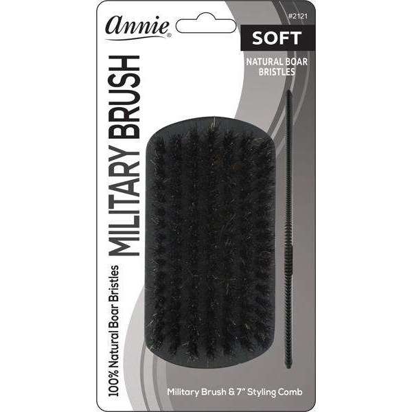 Annie Hard Wood Military Boar Bristle Brush With Comb 4.8In