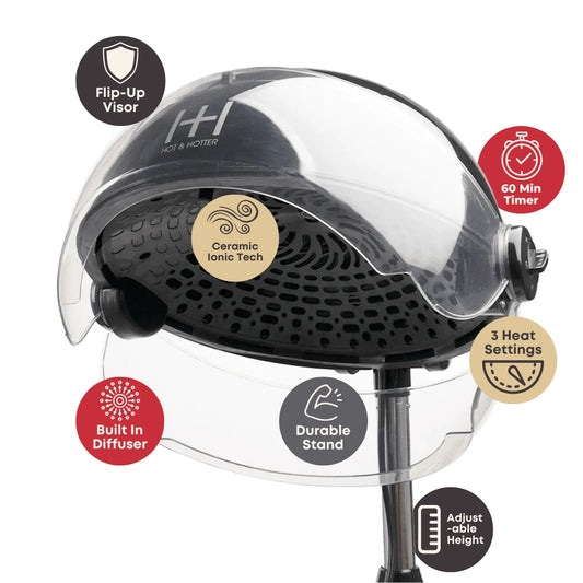 Hot & Hotter Turbo 3000 Professional Salon Dryer, Standing Hood Hair Dryer, Black