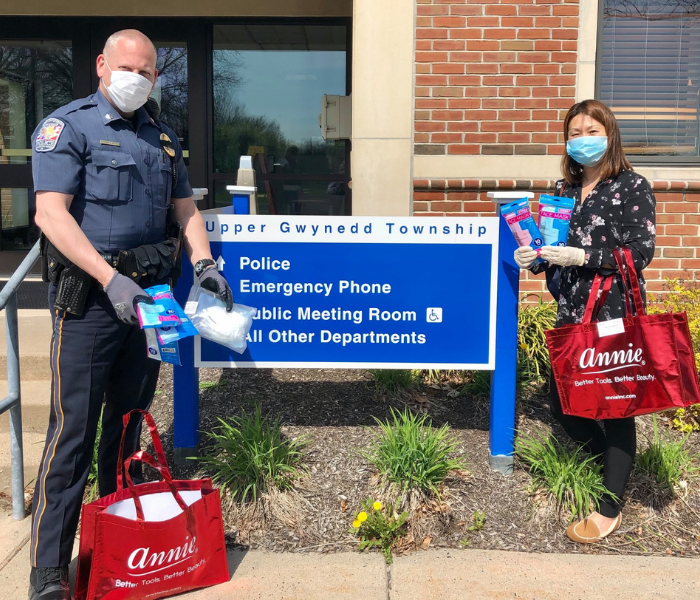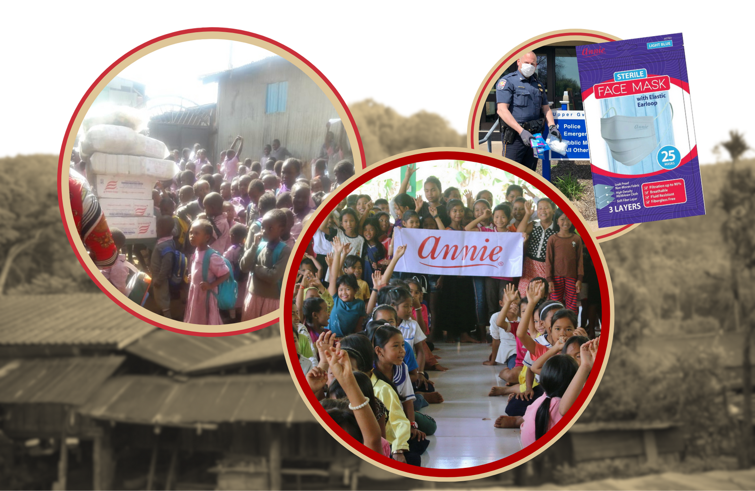 At the start of the pandemic, we as well as so many others were desperately seeking for PPE, such as masks and hand sanitizer. Starting in April 2020, we opened the Annie PPE division and started developing various products to help not only our employees live safely through the uncertain times ahead, but also to provide to our neighbors and people all over the world! Before masks were required to enter businesses here in Pennsylvania, we were donating to those working on the front lines. We sent PPE and beauty product care packages to the nurses at Jefferson Memorial Hospital in Philadelphia and also donated masks and gloves locally to our police department, senior care living facilities and grocery stores. We will continue to send PPE to our friends in Cambodia and Kenya to protect them as well.