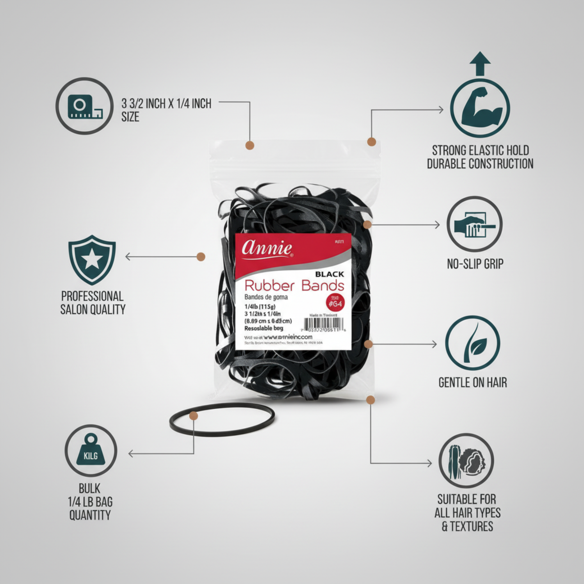 Banda de goma Annie 3 1/2" x 1/4", 1/4 lb negra
