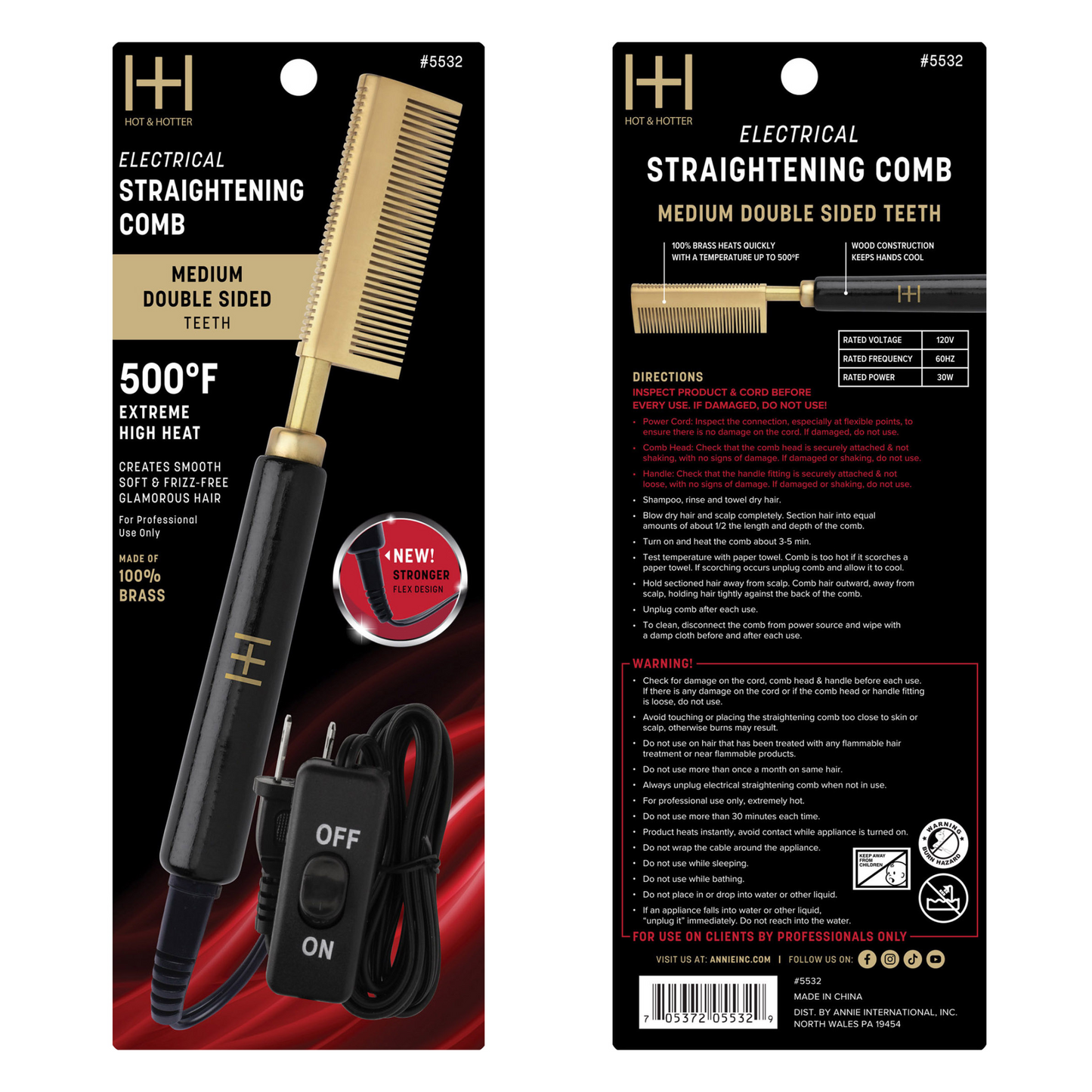 Peine alisador eléctrico Hot & Hotter, dientes medianos de doble cara