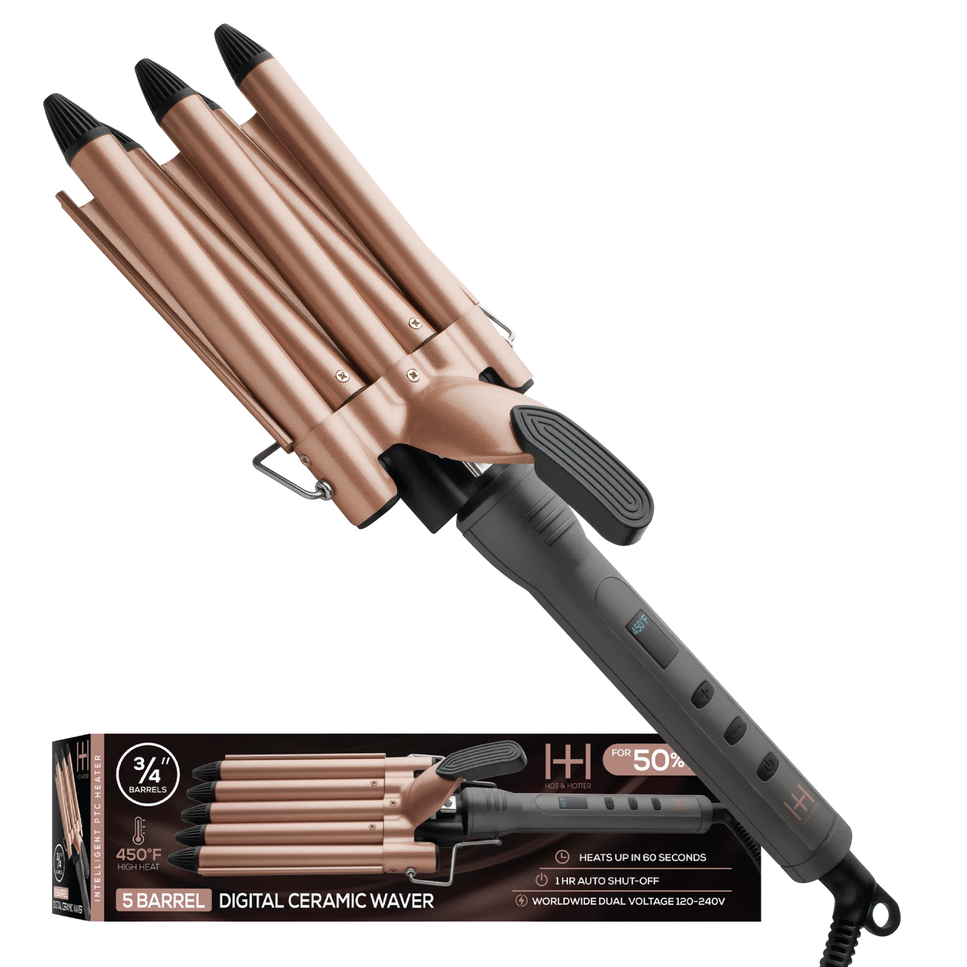 Rizador de cerámica digital de 5 barriles Hot & Hotter de 3/4 pulgadas