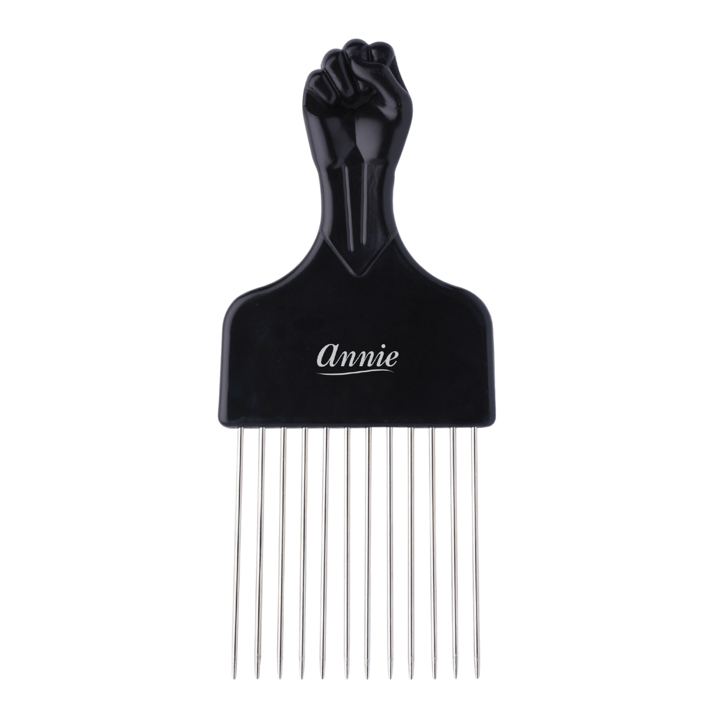 The Annie Afro Styling Pik is not just functional but also a stylish addition to your hair care arsenal. Its sleek black color adds a touch of elegance, while the decorative fist handle serves as a symbol of empowerment and pride in your natural hair.
