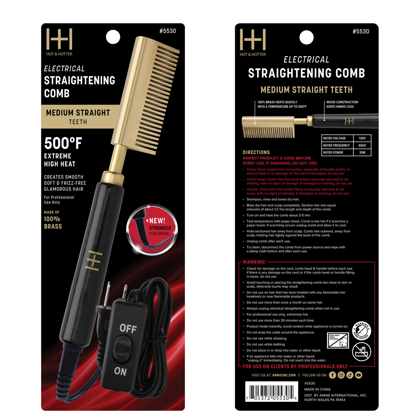 곧은 이빨이 있는 이 중형 전기 프레싱 빗은 당신이 기다려온 매력적인 모습을 선사할 것입니다! 머리를 사로잡는 부드럽고 곱슬거림 없는 직모를 만드세요!