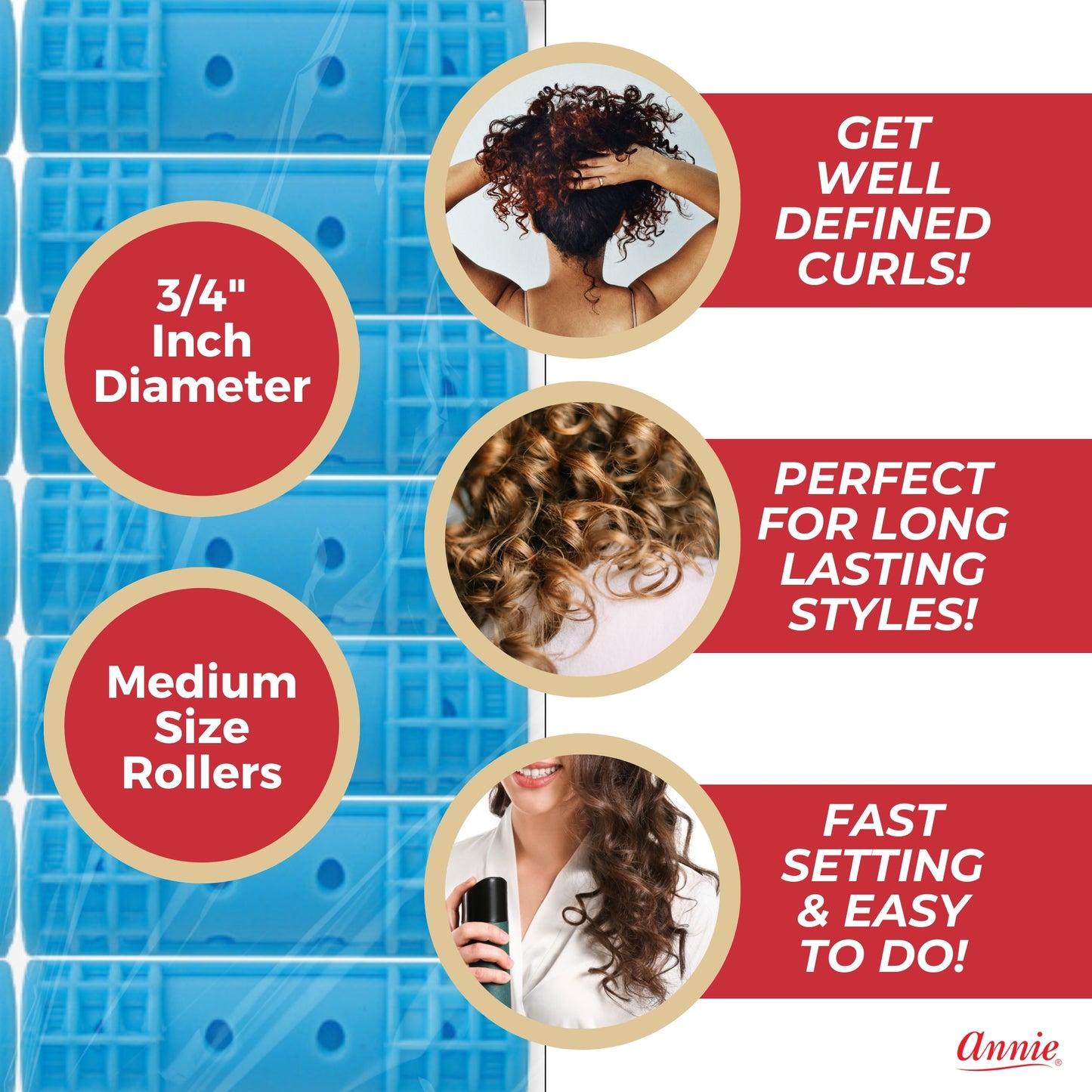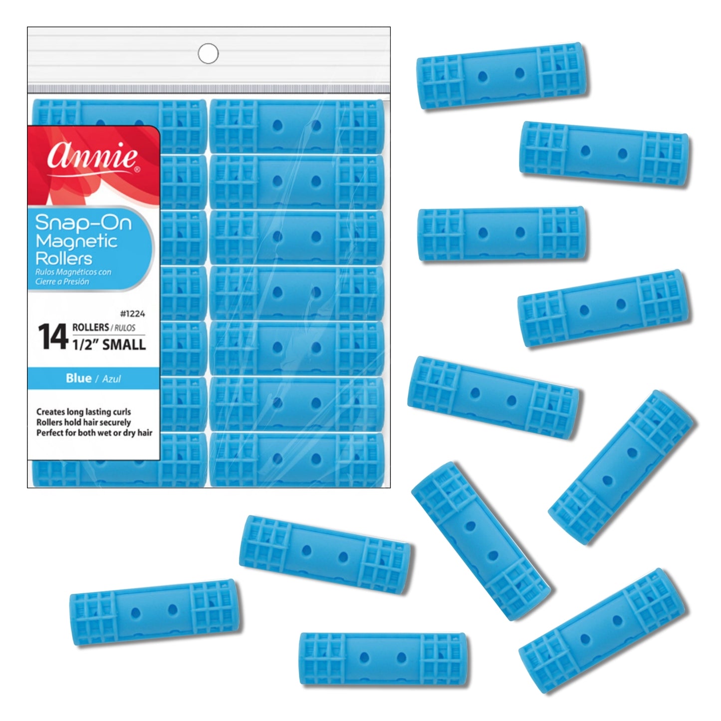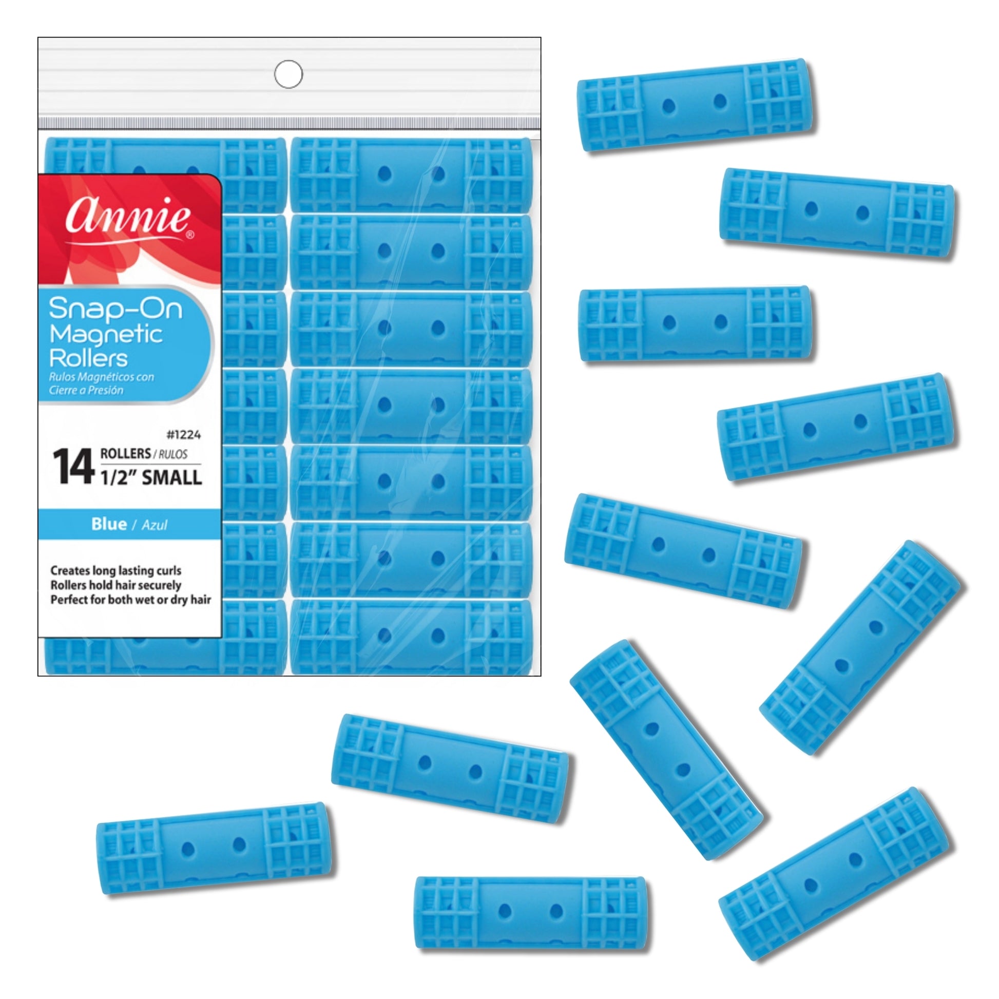 Annie Snap-On Magnetic Rollers 1 1/2in, 14 Count Small Hair Curlers, Blue