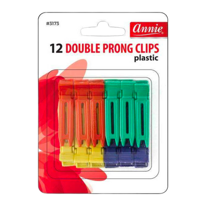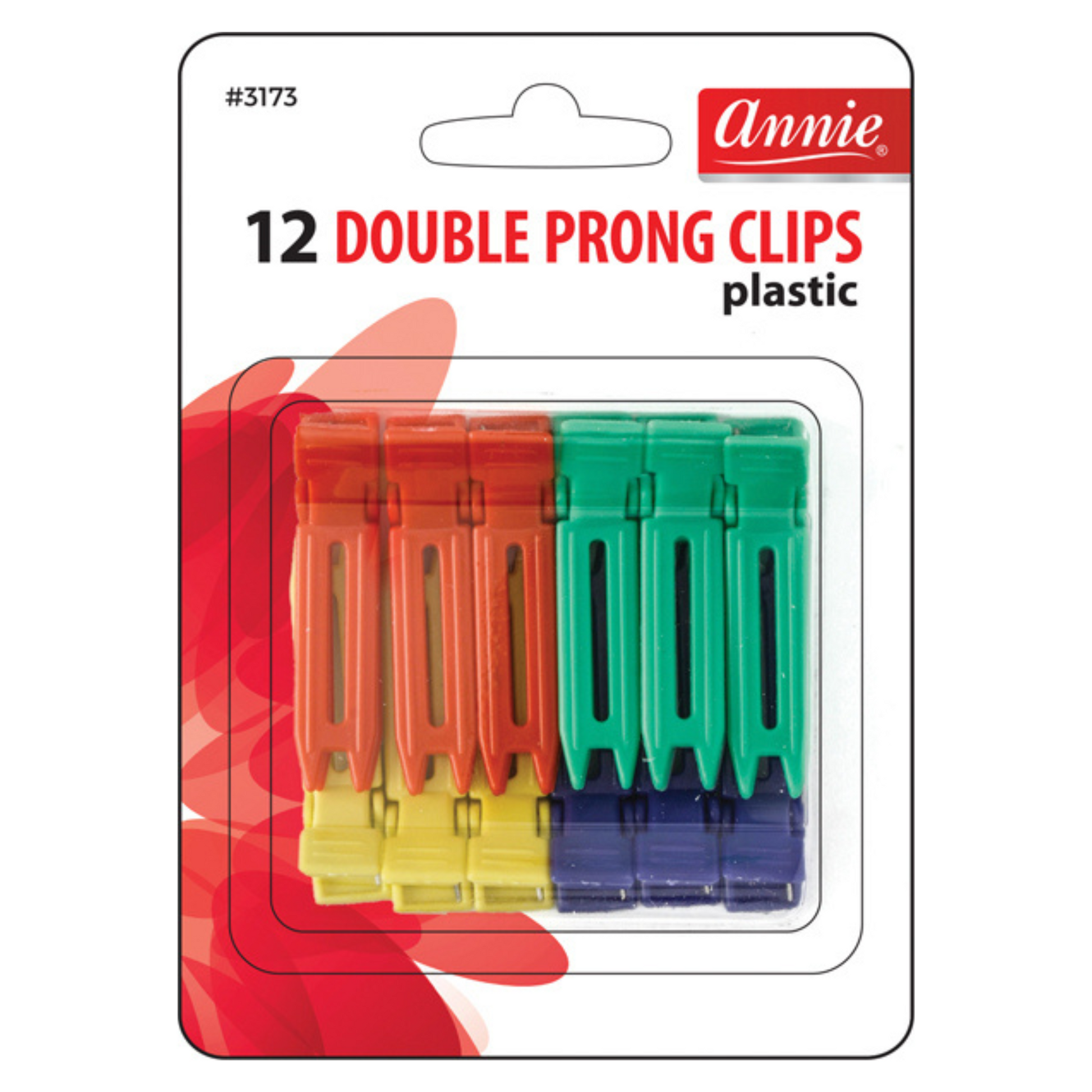 Take your hair game to the next level with Annie's Double Prong Clips! Designed for both professional stylists and at-home use, these multicolored clips provide excellent hair control and styling options. And with their super durable and reusable plastic construction, you'll have them by your side for every hairdo adventure. Grab this 12-count pack and let your creativity loose!