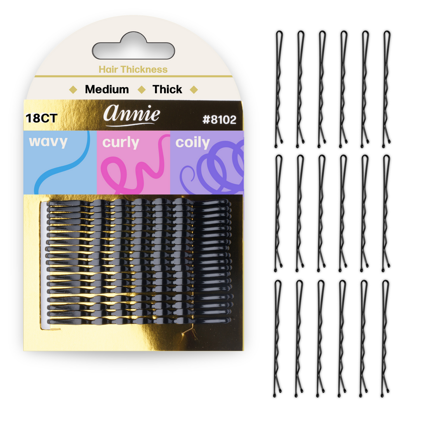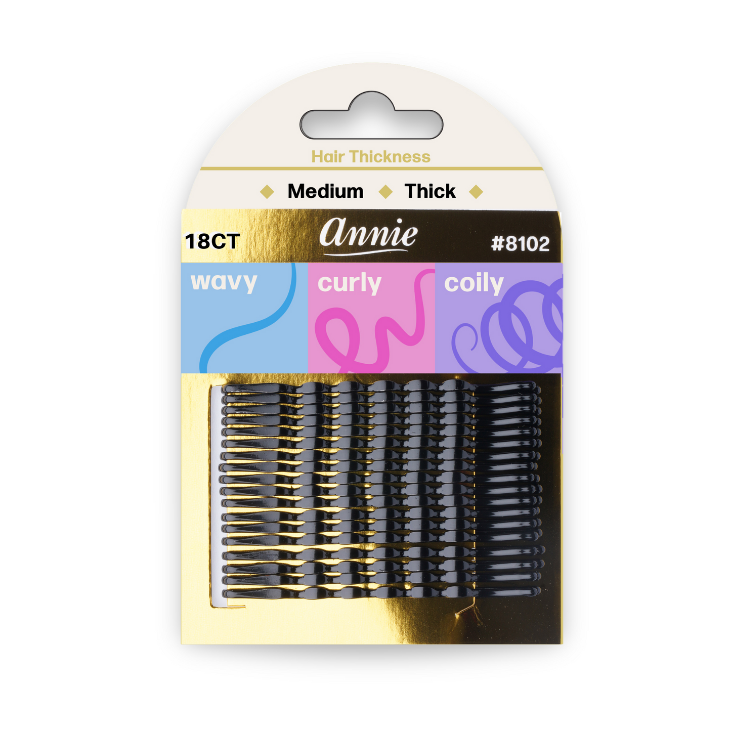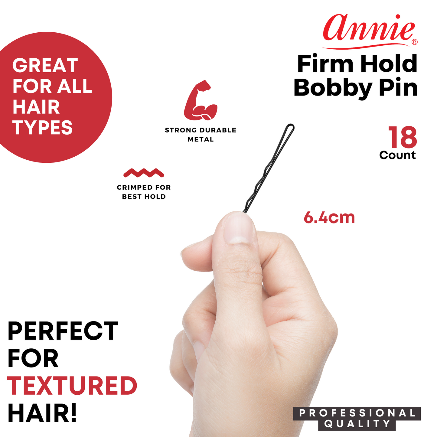 Elevate your hairstyling routine with the Annie 6.4cm Firm Hold Bobby Pin from the Textured Hair Series! Designed for all hair types—Wavy, Curly, and Coily—these crimped bobby pins deliver an exceptional grip that keeps your hair looking impeccable throughout the day. No matter if your hair is Thin, Medium, or Thick, this pack of 18 black bobby pins serves as your go-to solution for reducing breakage and promoting healthier hair. With a length of 6.4cm, they provide the ideal size for versatile styling and secure hold, preventing any slipping. Transition seamlessly from day to night, confident that your hairstyle remains in place and fabulous. Discover the perfect combination of functionality and elegance with Annie's textured hair accessories!