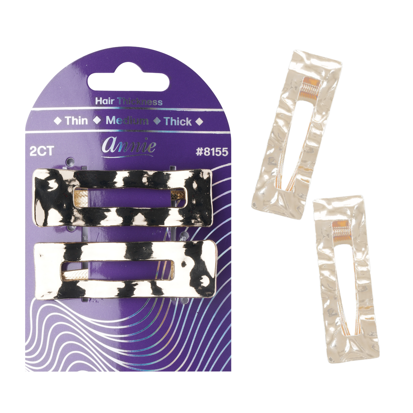 Discover the Annie Shiny Metal Hair Clips Rectangle, part of the Fancy Hair Accessory Line! Perfect for women’s hair and beauty enthusiasts, these 2-piece metallic hair clips boast a chic gold finish that’s both stylish and practical. Crafted from high-quality plastic, their bold metallic design makes them the go-to accessory for teens and adults looking to elevate their look with trendy lux flair. Ideal for adding a sophisticated touch to your style!