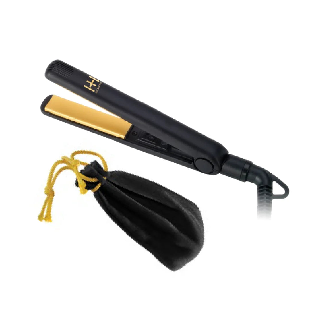Experience sleek, silky hair anywhere with the Hot & Hotter Gold Ceramic Mini Flat Iron. Its 5/8" ceramic plates use ionic technology to reduce frizz and deliver even, fast heat up to 410°F, ensuring smooth styling with less damage. Compact and travel-ready, it includes a free pouch and features a tangle-free cord for convenience on the go. Perfect for touch-ups, this black mini straightener fits your lifestyle with 120V compatibility.
