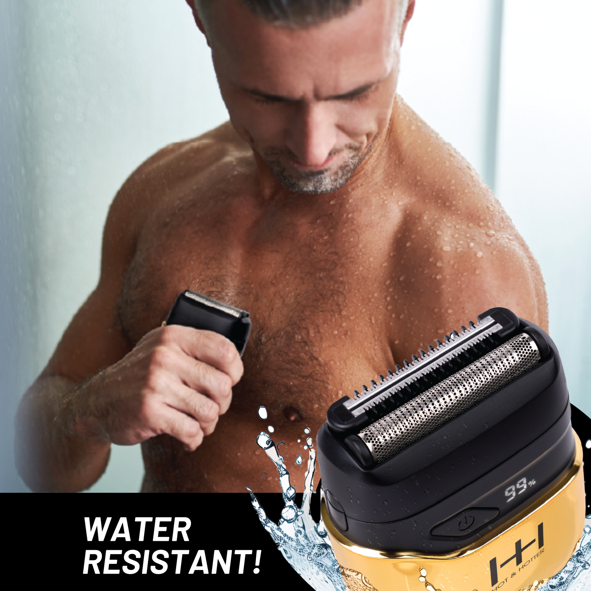 Upgrade your grooming game with the Hot & Hotter Dual Blade Mini Shaver, designed for men who demand performance and portability. This compact foil electric razor is designed for precision and convenience. Featuring a powerful 10,000 RPM motor and dual blade system, it delivers an ultra-close shave on short and long hair. The IPX7 waterproof body ensures easy cleaning, while a 120-minute lithium-ion battery, fast USB-C charging, and worldwide dual voltage keep you ready anywhere. With a sleek gold finish, digital battery display, and included cleaning brush, this travel-friendly shaver combines style, performance, and durability—perfect for modern men who demand professional results at home or on the go.