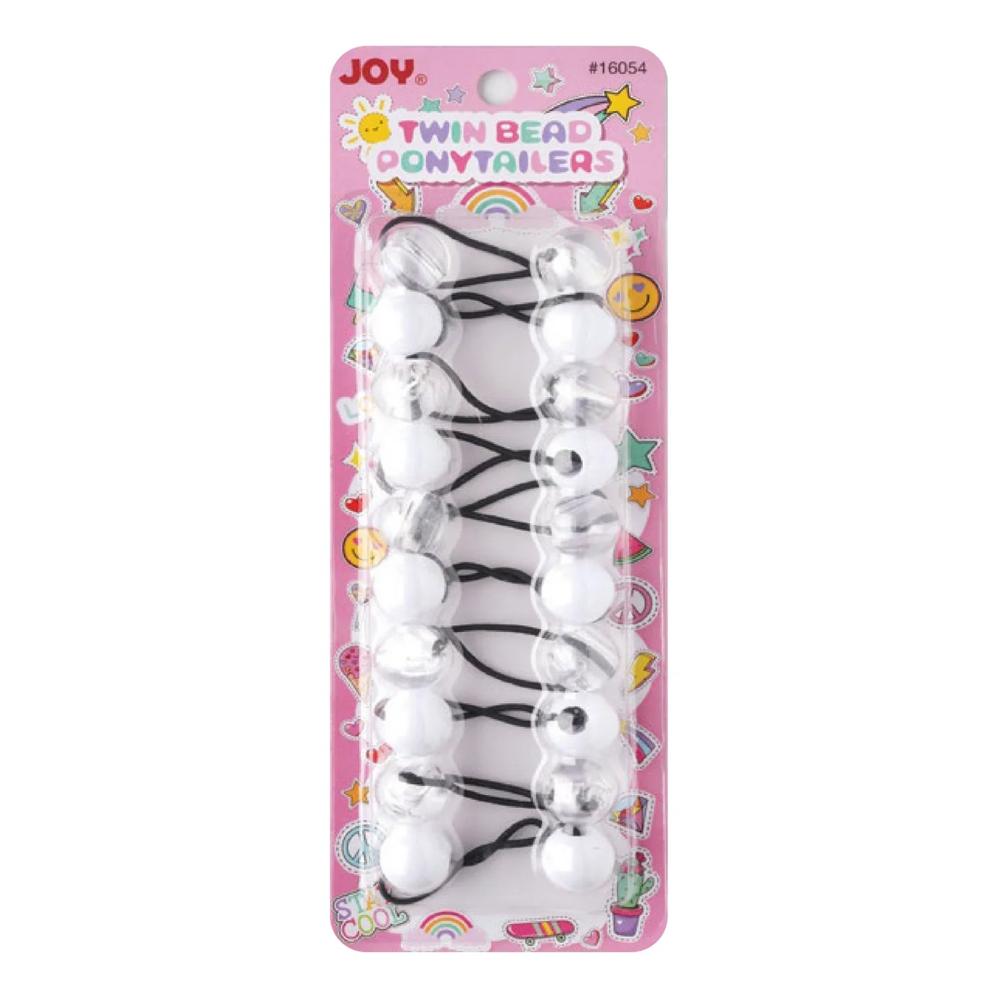 Joy Twin Beads Ponytailers 10Ct White & Clear