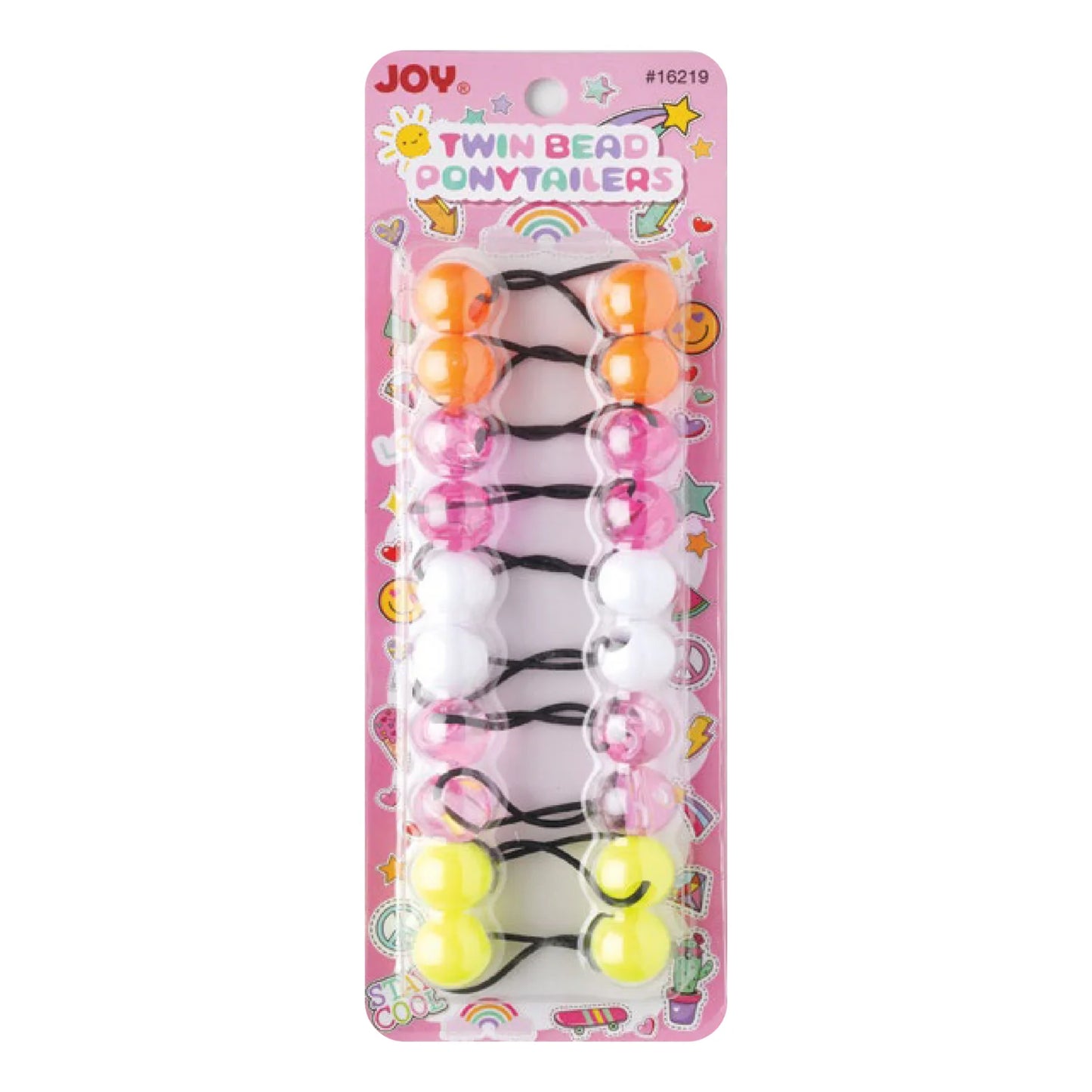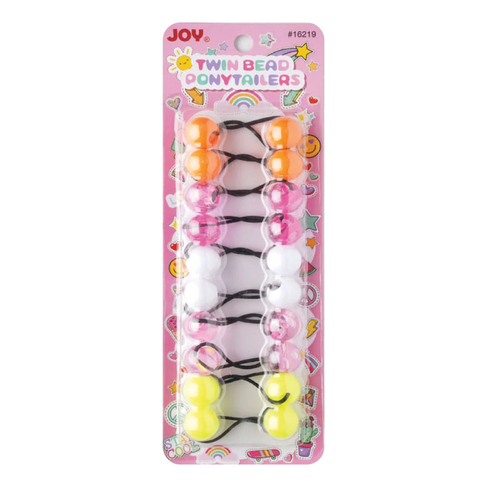 Joy Twin Beads Ponytailers 10Ct Clear Orange, Yellow, White, Pink