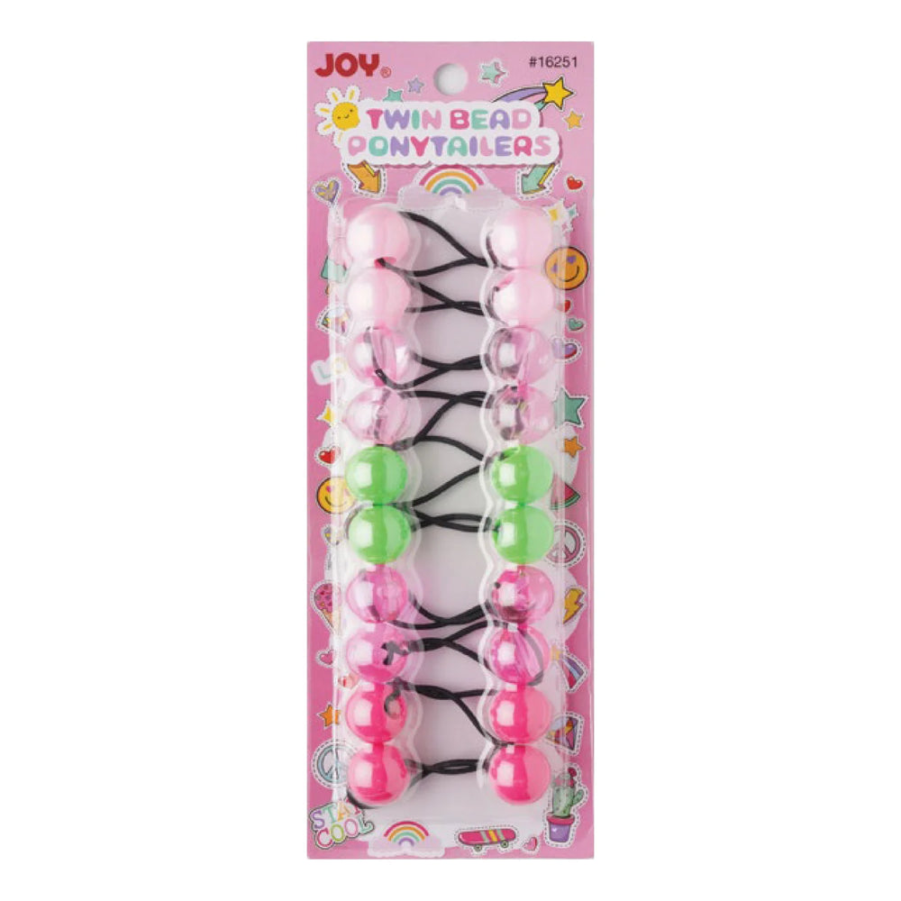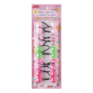 Joy Twin Bead Ponytailers 10ct Clear Green, Pink, Purple