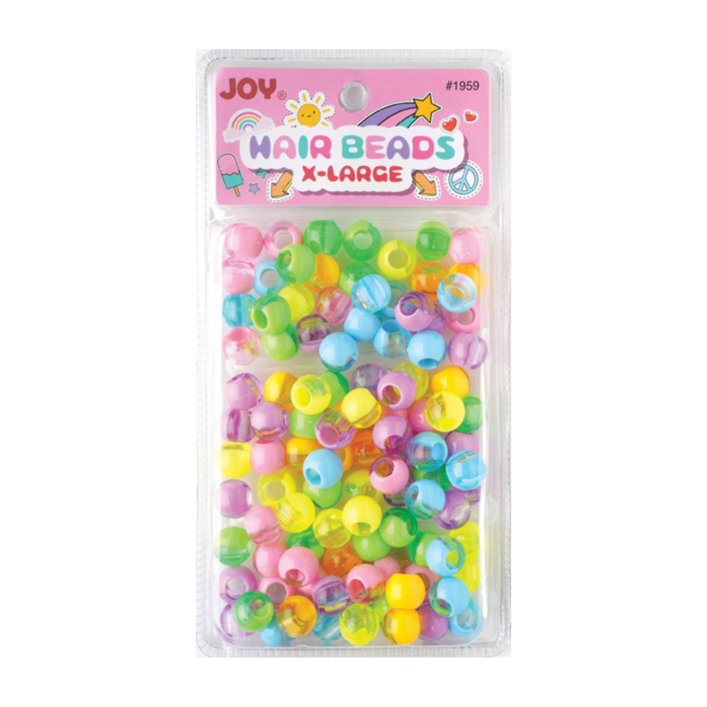 Step up your bead game with these top-notch beads! Great for both kiddos and grown-ups! Add some pizzazz with these bold, jumbo beads. Stay stylish with the hip Two Tone Pastel Mix. Pack contains 100 resilient plastic beads - ideal for mastering African hair braiding.