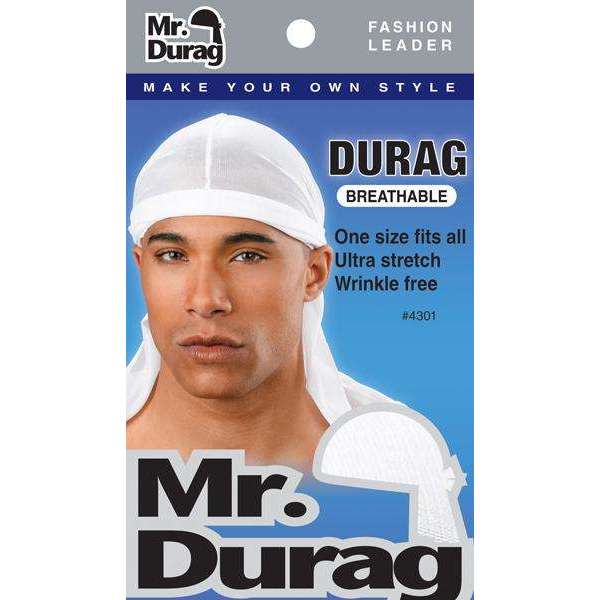 Introducing the Mr. Durag Solid Durag in White, the ultimate fashionable headwear that combines style, comfort, and practicality. Made with ultra-stretch fabric, this durag ensures a perfect fit while maintaining its shape thanks to its wrinkle-free design. The breathable material keeps you cool and comfortable all day long, making it ideal for both daily wear and special occasions. Elevate your style with the Mr. Durag Solid Durag White, the perfect accessory for a polished look. Keywords: Mr. Durag, Solid Durag, White, breathable, wrinkle-free, comfortable, fashionable headwear, ultra-stretch fabric.