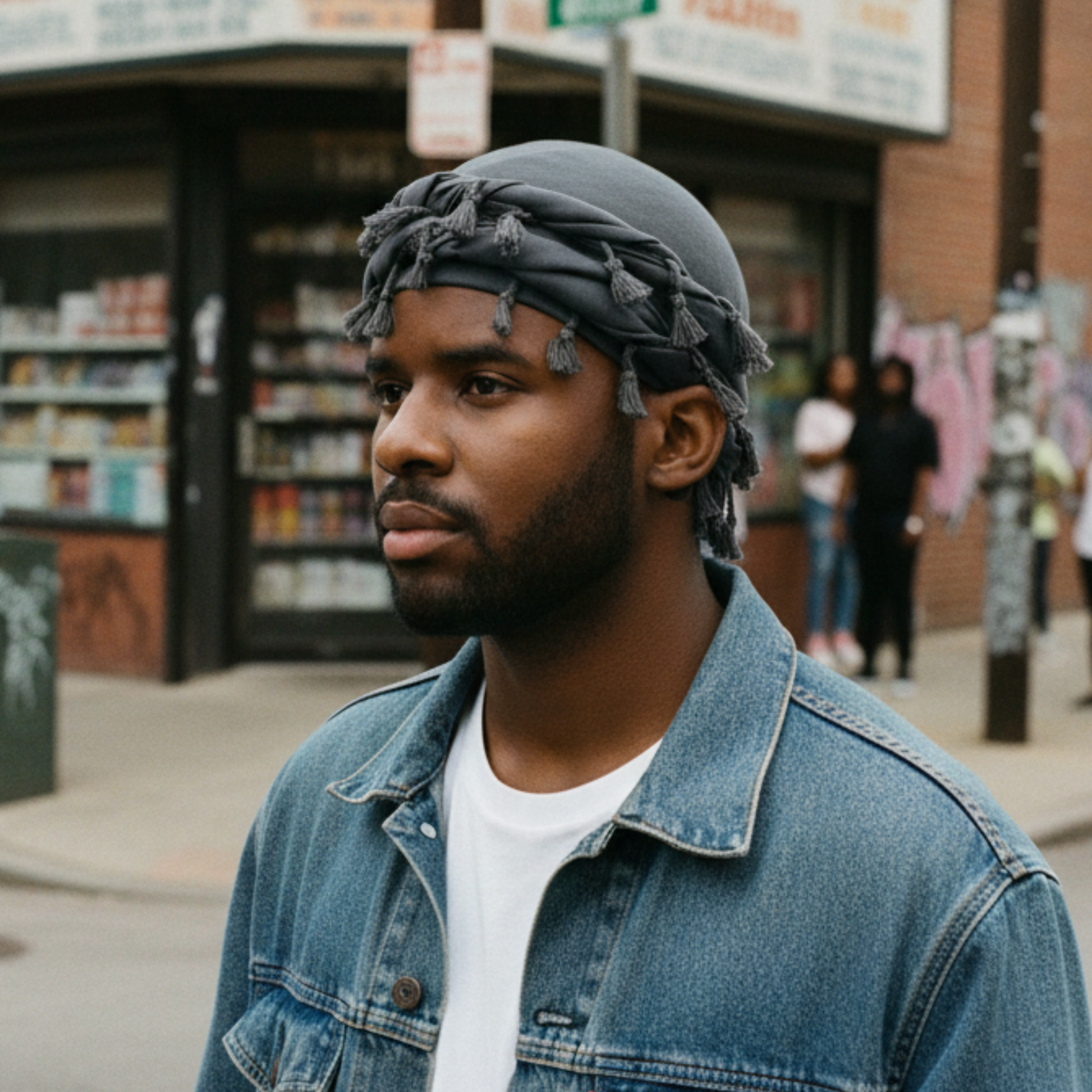 Mr. Durag Silky Spandex Crown Turban with Tassel L/XL, 1 Count Men's Halo Turban, Assorted Color