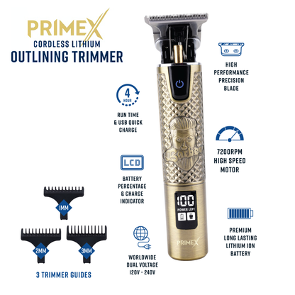 PrimeX Cordless Lithium Outlining Barber Trimmer Brass